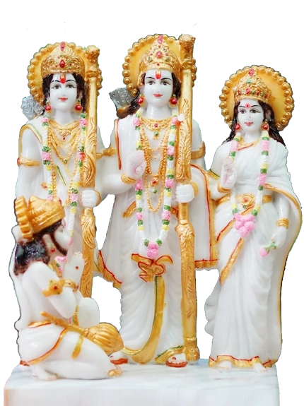 Experience the divine grace and harmony of Lord Ram, Sita, Lakshman, and Hanuman—symbolizing love, courage, and righteousness. A perfect depiction of peace and spiritual devotion.