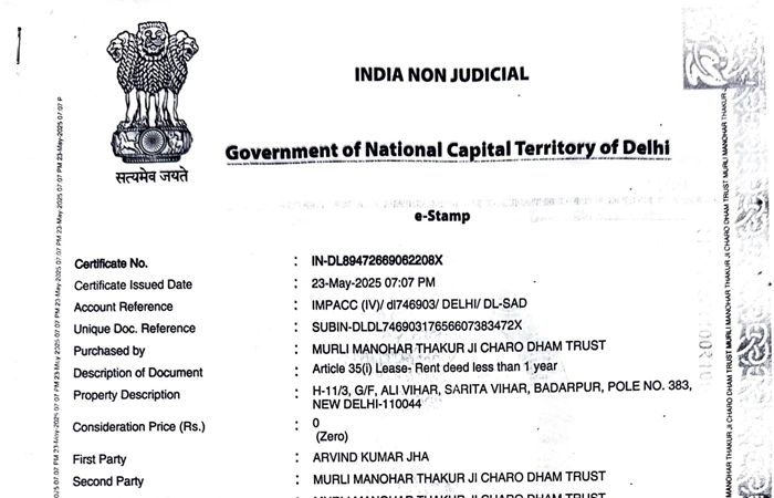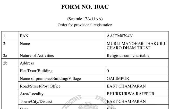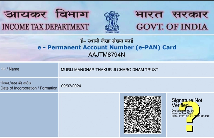 मंदिर के दीवार पर नाम लिखवाने के लिए 3 व्यक्ति के लिए धन राशि 1151000 रूपये